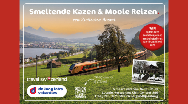 de Jong Intra Vakanties en Switzerland Tourism nodigen je uit voor een Zwitserse avond
