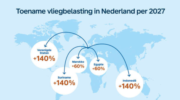 Vliegbelasting stijgt in 2027 met 60 tot 140 procent