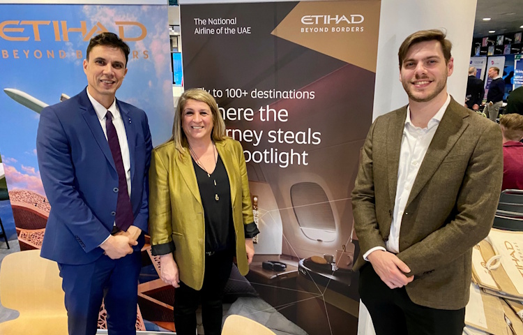 Team Etihad Airways (vlnr): Mohamed Boutiche (general Manager Frankrijk & Benelux), Dimitra Tsaoussi (Account Manager) en Michael Zeegers (Account Manager).