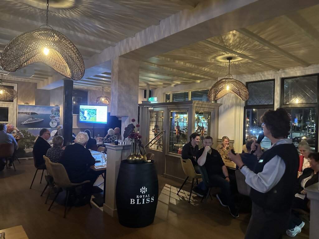 Dat de opzet werkte, bleek uit de reacties van de aanwezigen. ‘Er waren vanavond klanten die vooraf zeiden niet geïnteresseerd te zijn in cruisen maar die achteraf aangaven toch getriggerd te zijn door de presentaties’, vertelt een enthousiaste Minet. Aan tafel werd volop gepraat over gemaakte vakanties en reizen die op de planning staan, geboekt bij Minet, die in Leersum en omgeving kan rekenen op een grote vaste klantenkring.