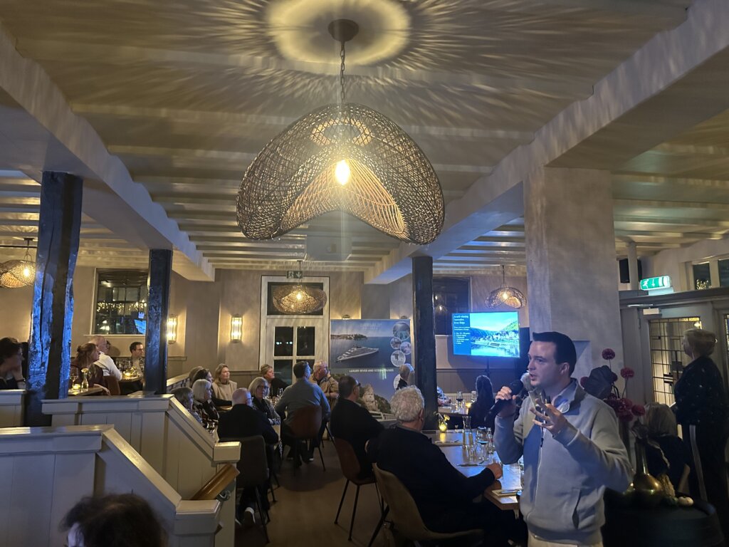 ‘Wat een feestje was het vanavond’, zo omschreef Minet de avond na afloop. Ruim 60 genodigden, waarvan sommigen zelfs van boven Amsterdam naar Leersum waren afgereisd, genoten van een diner met een bord Rendang waardoor je haast in Leersum zou blijven in plaats van Azië op te zoeken, gevolgd door Italiaanse lekkernijen die deden verlangen naar een terras aan de Middellandse Zee. Maar het ging om meer dan alleen het eten. ‘Ik organiseer dit echt om mijn klanten te inspireren én te bedanken’, aldus Minet, die door de jaren heen menig cruiseschip heeft leren kennen.