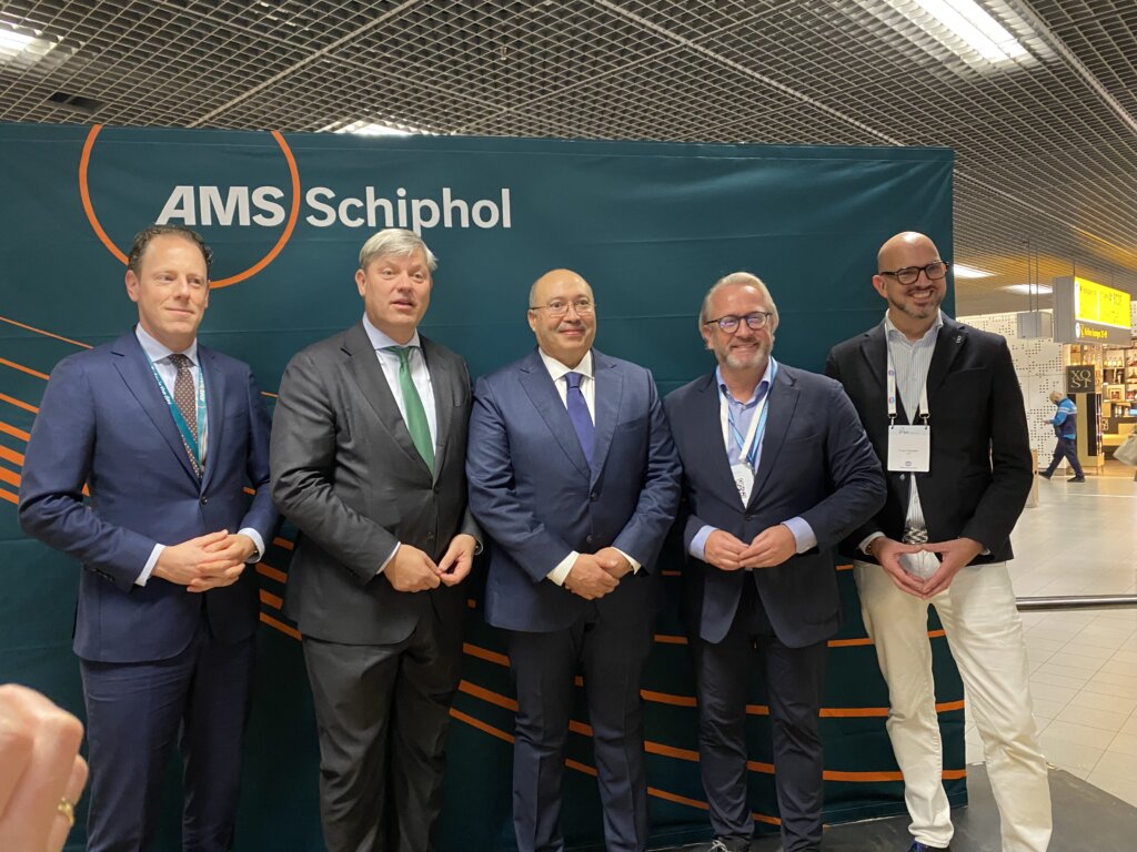 De ANVR congresvlucht naar Rabat was donderdagochtend tevens de eerste vlucht van Transavia naar de hoofdstad van Marokko dit winterseizoen. Ter gelegenheid daarvan was de ambassadeur van Marokko, Mohamed Basri, in alle vroegte naar Schiphol gekomen voor een officieel uitzwaaimoment, samen met Transavia-topman Marcel de Nooijer.
