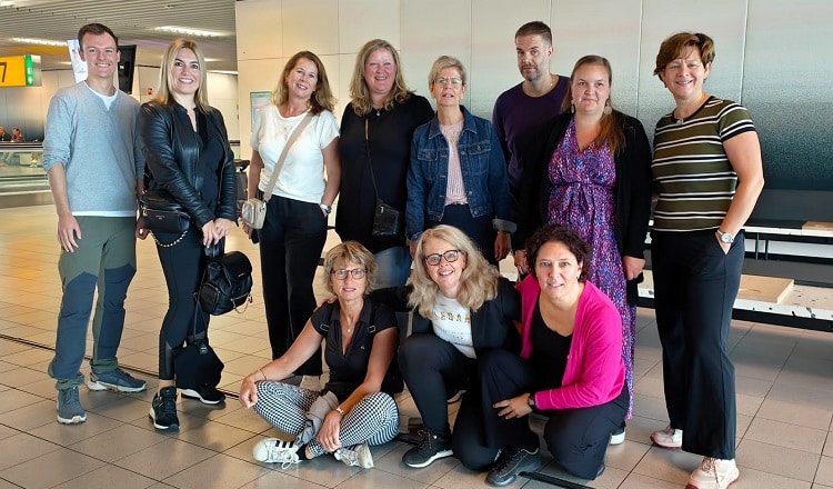 Foto: de deelnemers van de winnaarsreis van EURAM bij vertrek op Schiphol.
