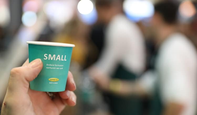 ‘Start de dag goed en laat de barista een vers kopje koffie, een warme thee of een latte macchiato klaarmaken. De ideale start van de dag. En na al die ongelimiteerde kilometers op de beurs is een verse smoothie een goede afsluiter van de dag. Even een vitamineboost en je bent weer opgeladen.’