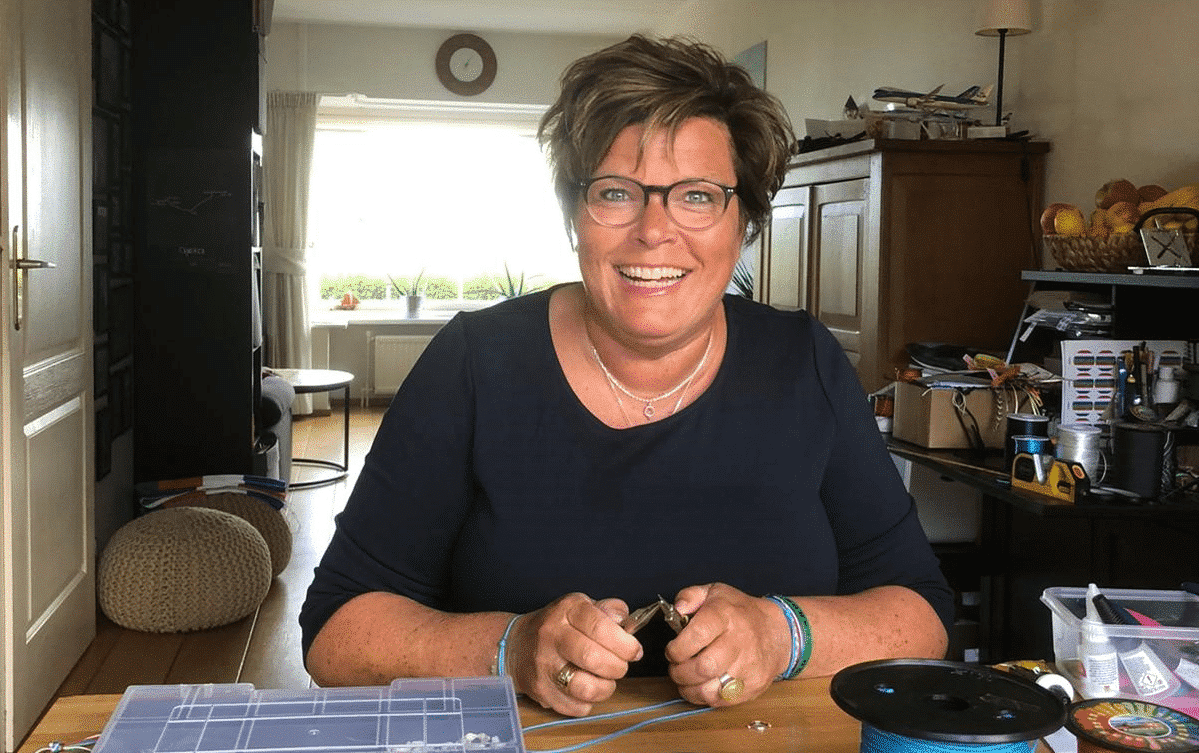 Monique Talsma, MRA bij TUI at Home, had door de coronacrisis ineens zeeën aan tijd. Maar stilzitten was geen optie. Talsma bestelde meters satijnkoord en pakte een oude hobby op: het knopen van armbanden. Dat bleek een groot succes. In een interview met TravMagazine: ‘Het was een pure gok, maar mijn gevoel zei: gewoon doen.’