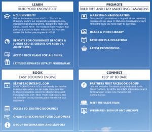 Het gloednieuwe trade portaal Norwegian Central biedt de ideale middelen waardoor reisagenten hun business kunnen vergroten met het succesvol verkopen van NCL cruises. Log simpelweg in met Book Norwegian-inloggegevens en krijg toegang tot alles wat je nodig hebt. Van trainingen bij NCLU tot het laatste nieuws en promoties, van marketingmateriaal tot afbeeldingen om de communicatie tot leven te brengen, alle relevante NCL- contacten en natuurlijk een gebruiksvriendelijke boekingsmodule.