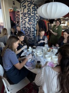 Na het inhoudelijke programma was het tijd om zelf creatief aan de slag te gaan. Tijdens een workshop werkten de gasten met Eco Epoxy, waarbij vloeibare kunst in verschillende vormen werd gegoten met een marble-effect als kleuraccent. De golvende patronen symboliseerden de beweging van de oceaan; een subtiele knipoog naar het leven aan boord. De activiteit sloot naadloos aan bij The Artist Loft, de creatieve studio op de schepen van Oceania Cruises, waar gasten tijdens hun reis workshops en kunstlessen kunnen volgen.