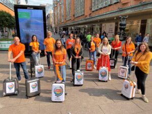 Aansluitend was er een ludieke actie in het centrum van de stad. Ruim 250 medewerkers uit de reisbranche liepen met een rolkoffer door de winkelstraten om aandacht te vragen voor de benarde situatie waarin de reissector zich bevindt. Hierbij werd uiteraard de anderhalve meter afstand in acht genomen.