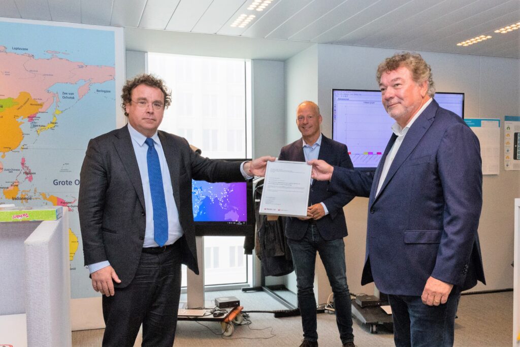 Foto (vlnr): Dirk Jan Nieuwenhuis (Buitenlandse Zaken), Remco Dijkstra (Tweede Kamerlid VVD) en initiatiefnemer Tom van Apeldoorn.