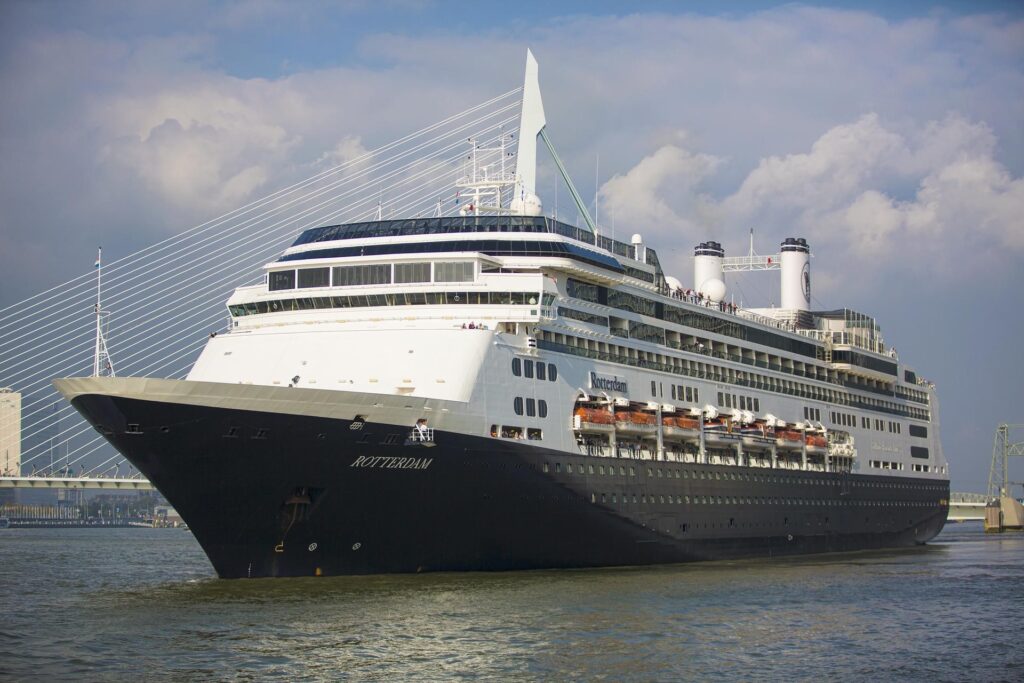 De Rotterdam, het schip van Holland America Line, doet maandag 10 augustus voor de laatste de haven van Rotterdam aan.