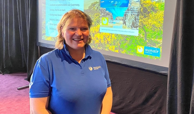 ‘We merken dat de belangstelling voor de Kanaaleilanden groot is’, zegt Marja Bouwmeester van Sunair. ‘Met het uitgebreide aanbod en de vroege beschikbaarheid van de brochure spelen we graag in op de wensen van onze klanten en reisagenten.’ (Foto boven: Marja Bouwmeester (Archieffoto TravMagazine).