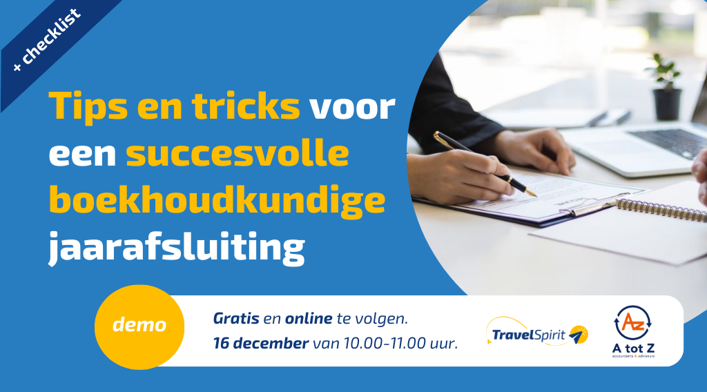 TravelSpirit publiceerde eerder een artikel met heldere tips voor gebruikers om de jaarafsluiting in de software efficiënt uit te voeren. De bijbehorende demo is inmiddels geweest en terug te kijken via de website.