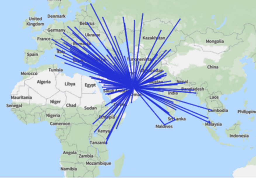 Rol: Oman wordt door luchtvaartexperts gezien als een veiliger overstappunt omdat vluchten vanaf hier direct over de Arabische Zee richting het oosten kunnen vliegen, zonder het Iraanse of Emiratische luchtruim te hoeven doorkruisen.